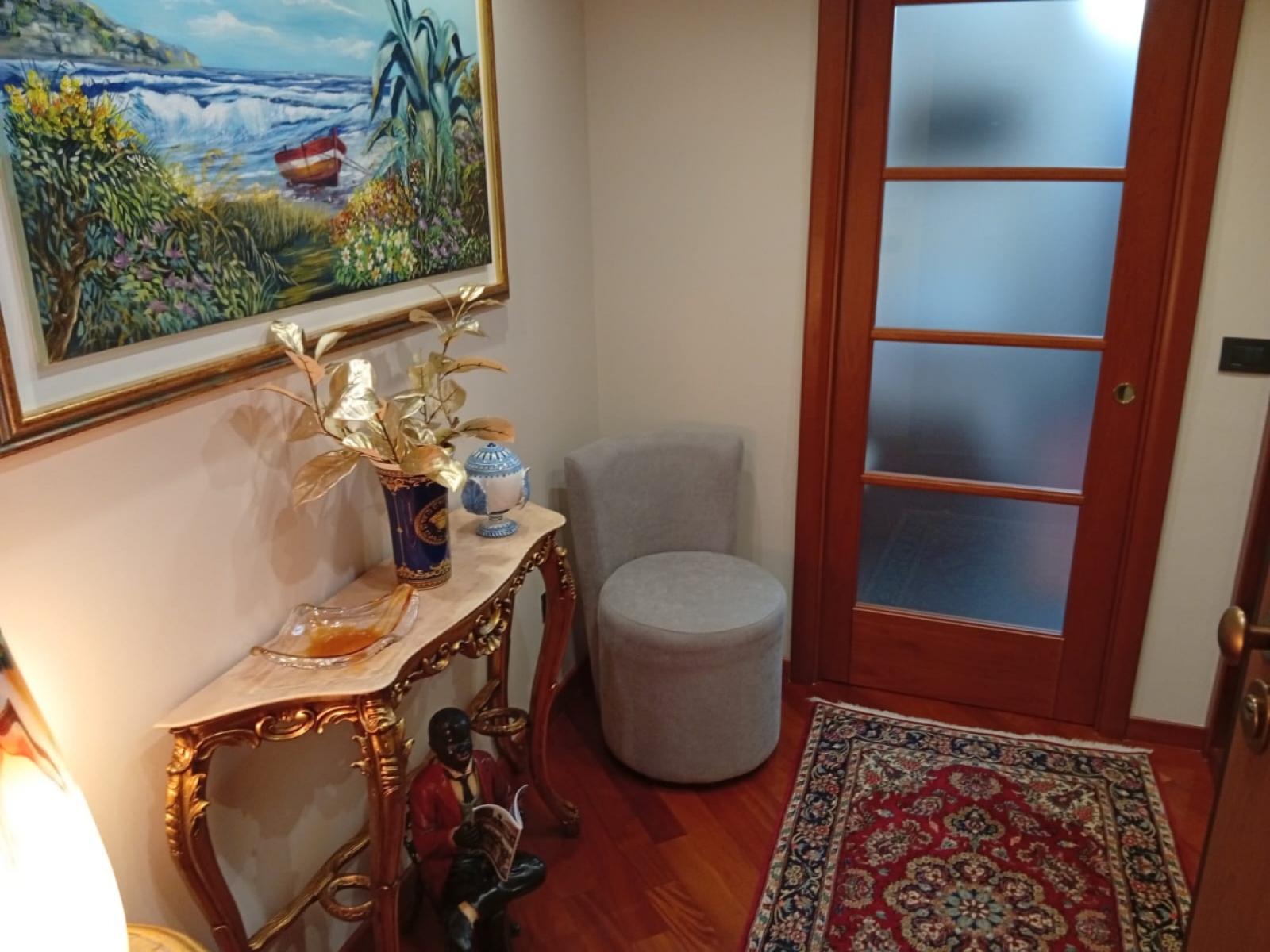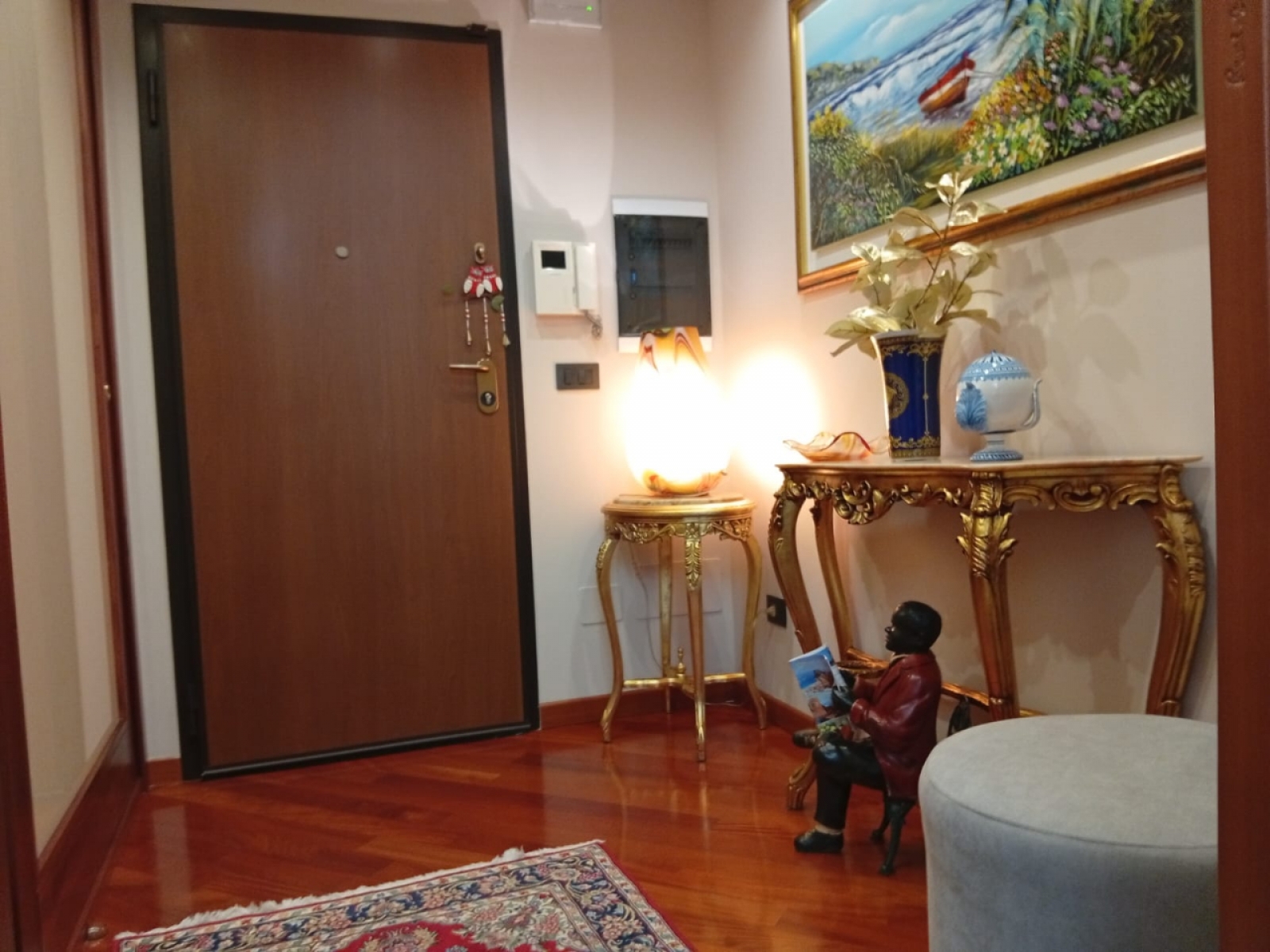 Ingresso con zona accoglienza, arricchita da specchi e arredi su misura