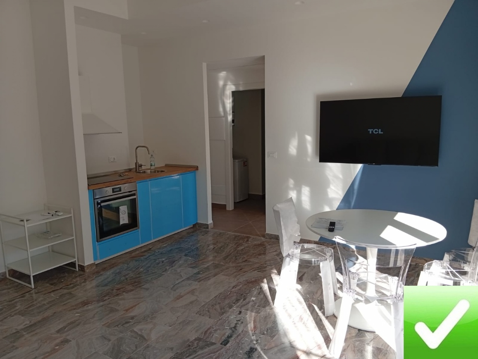 L’ingresso si apre su un’ampia zona living con soggiorno e cucina a vista. La zona notte è composta da una comoda camera da letto, antibagno con zona lavanderia e bagno moderno.
