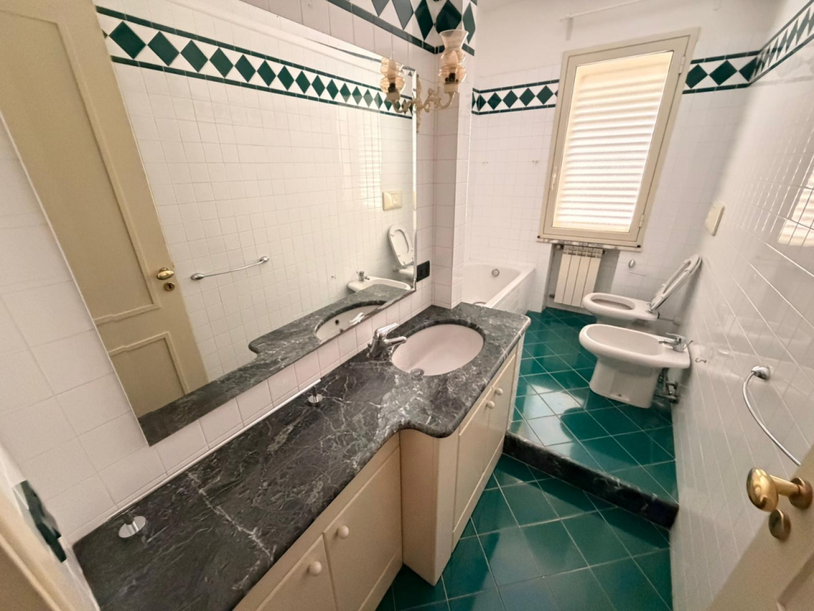 due bagni finestrati, uno con doccia e uno con vasca;
